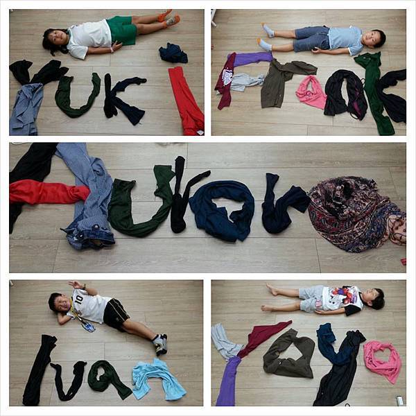 展廳內還有一個關於「線條」的展覽,導覽老師透過紅色毛線球「皮皮」的故事,帶領孩子們認識線條的變化。皮皮去過好多地方,見過各種雕像,有些雕像體態婀娜多姿,呈現英文字母 S 型,也有雕像直挺挺地立著,就呈現英文字母的 I 型,皮皮的毛線也隨之千變萬化,隨心所欲的變成各種形狀,同時,老師也教導孩子們如何擺出相同的姿勢,大家一會兒伸直雙手,一會兒彎腰的動動身體,畫面真是有趣!